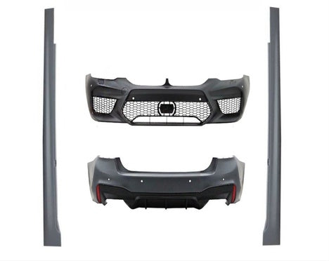 Transform your BMW 5 Series G30 with this striking M5-inspired body kit. This complete kit includes the front bumper, side skirts, rear bumper, and diffuser, all designed to elevate your vehicle's aesthetic with an aggressive and refined M5 look. Crafted from premium materials, this body kit not only enhances the visual appeal but also improves aerodynamics for better performance and handling. Whether you’re looking to stand out or simply upgrade your vehicle’s style, this M5-looking body kit delivers both form and function.